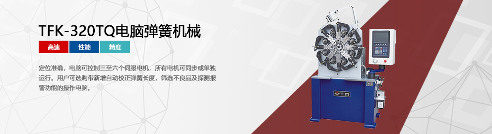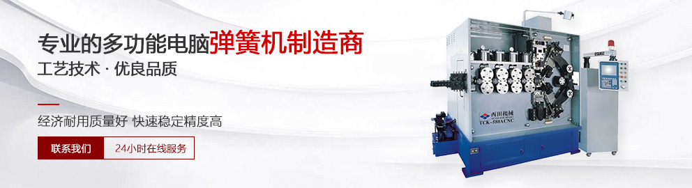 東莞市西田彈簧機(jī)械有限公司,位于美麗的珠江畔,中國(guó)最具魅力城市——東莞市,地理位置優(yōu)越,交通方便。 東莞市西田彈簧機(jī)械有限公司是集彈簧設(shè)備研發(fā)、測(cè)試、制造、銷售于一體的民營(yíng)科技企業(yè),生產(chǎn)的電腦彈簧機(jī)型號(hào)有:TCK-208N/Y壓簧機(jī)、TCK-208B壓簧機(jī)、TCK-220A/226A壓簧機(jī)、TCK-235A/335A壓簧機(jī)、TCK-350A/550A壓簧機(jī)、TCK-580A壓簧機(jī)、TFK-320TQ/620TQ數(shù)控彈簧機(jī)、TFK-330/335TQ數(shù)控彈簧機(jī)、TFK-340/350TQ數(shù)控彈簧機(jī)等系列,彈簧機(jī)繞制的鋼線直徑為0.15-8.0毫米,可繞制拉簧、扭簧、壓簧、異形簧等各式彈簧......