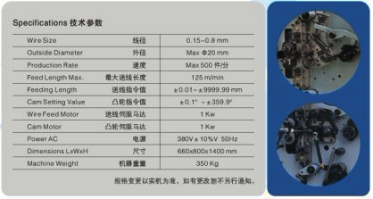 3、 標準配置有左右向卷線刀座,可生產多種壓縮彈簧及油封彈簧;配備有扭簧裝置機構,